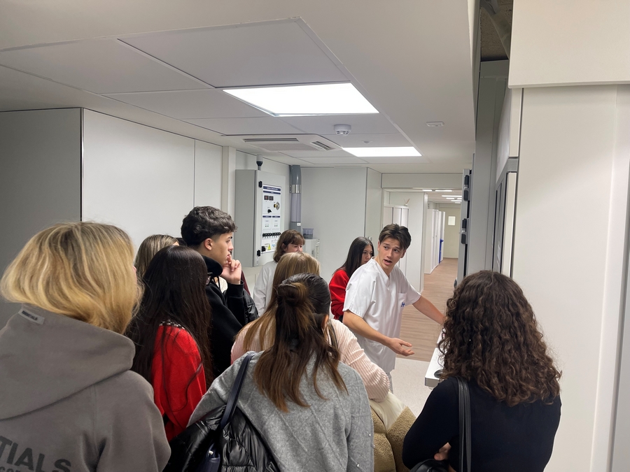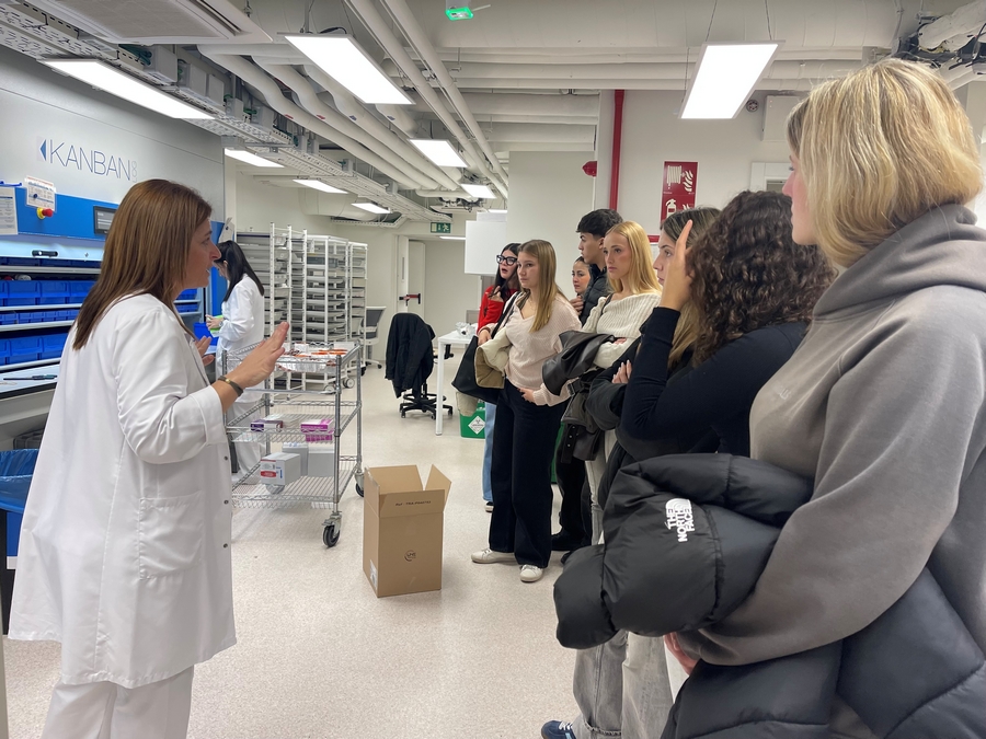 També hem rebut l’alumnat del Cicle Formatiu de Grau Mitjà de Cures Auxiliars d’Infermeria de l’Escola Vedruna de Navàs. Han fet un recorregut per diferents serveis de l’hospital amb l’objectiu de conèixer les diferents sortides professionals. Van tenir l’oportunitat d’entrar a la nova farmàcia, veure les diferents tasques que s’hi realitzen, des de la recepció de medicaments, a l’elaboració de fàrmacs i també com es fa la distribució de la medicació per les diferents plantes. Un altre servei que van visitar va ser Radiologia, on van poder conèixer les diferents proves diagnòstiques que s’hi realitzen (radiografies, ecografies, mamografies, etc.) I per acabar van veure de primera mà la tasca que es realitza a la seu del Banc de Sang i Teixits, situat a l’hospital.